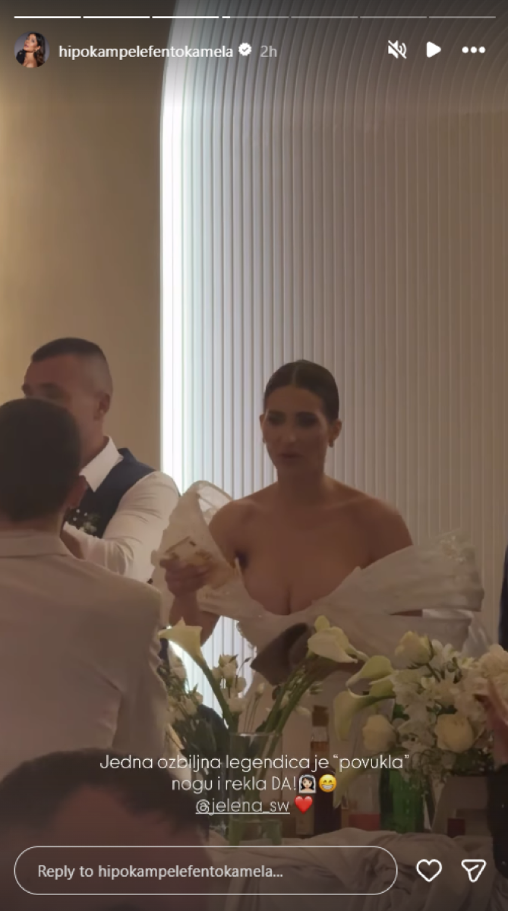 Jelena je za svoj najposebniji dan odabrala unikatnu i raskošnu venčanicu koja je ostavila sve prisutne bez daha, a u prvom planu bio je duboki dekolte.