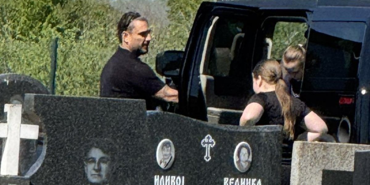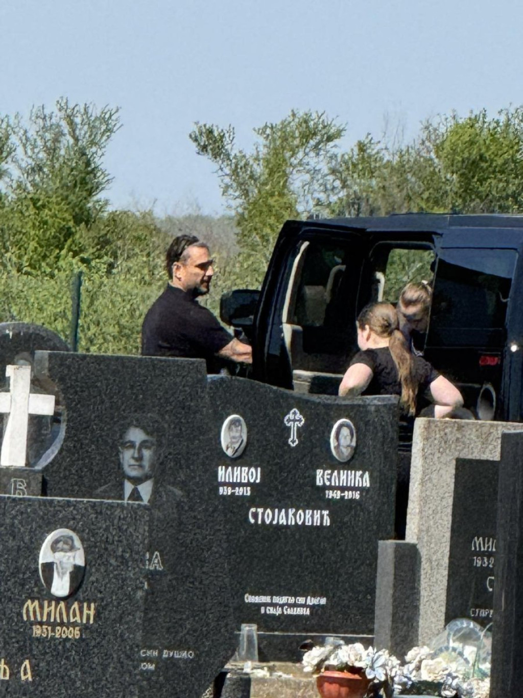 Darko je stigao na groblje u crnini, a sa njim su bile i ćerke tragično nastradalog Dragana koje su došle na očev grob, a stric ih nije ispuštao iz vida.