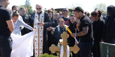 Nakon toga, Darko je prišao i poljubio krst, što je uradila i njihova majka Branka. Ona je nakon toga počela da jeca i sela je, a Darko se nije odvajao od nje u ovim teškim trenucima.