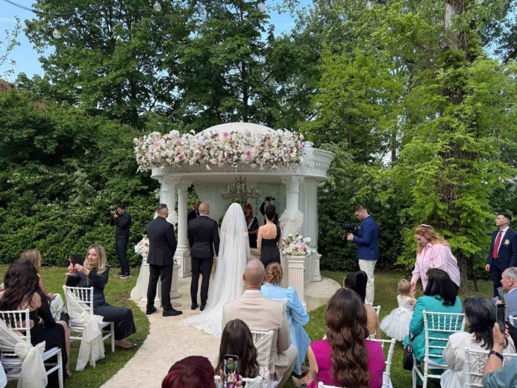 Venčanje je upriličeno u jednom novosadskom dvorcu koji je smešten na samoj obali reke. Iako je želja mladenaca bila da se svadba održi daleko od očiju javnosti, u prisustvu najblizih prijatelja, kumova i članova porodice, interesovanje medija bilo je ogromno.