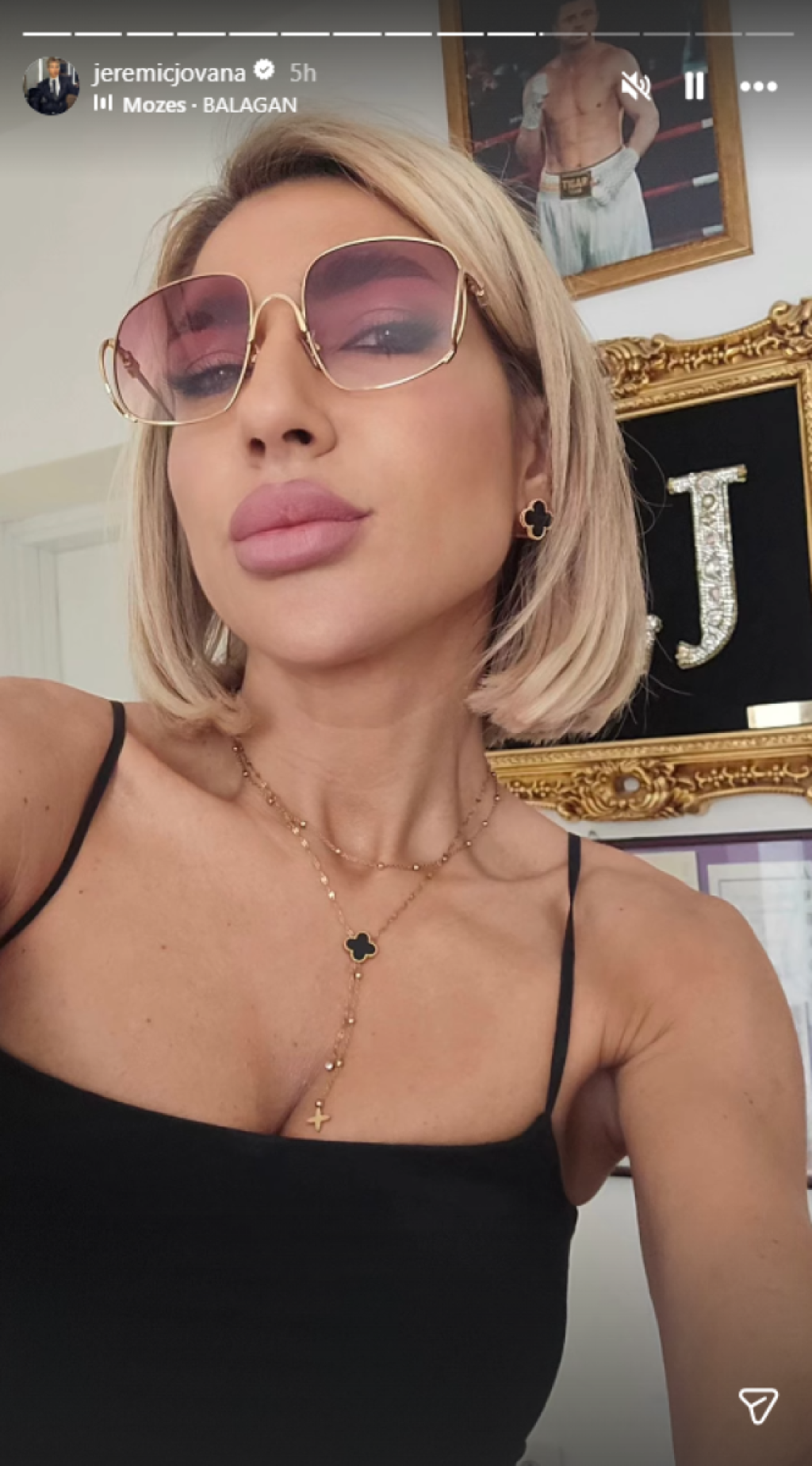 Naime, iza Jovane se jasno vidi portret njenog partnera Miloša Stojanovića Tigra.
