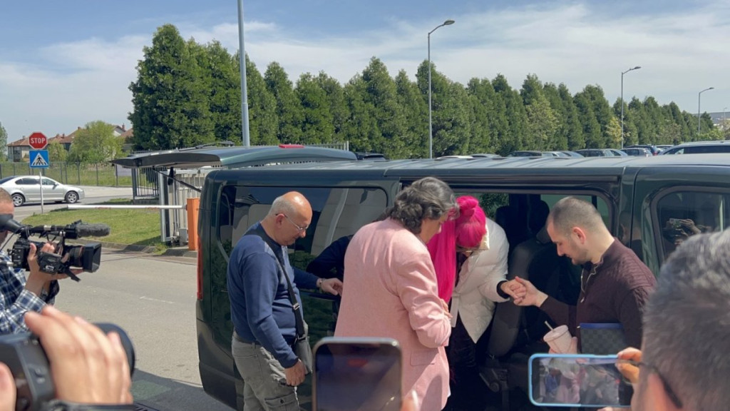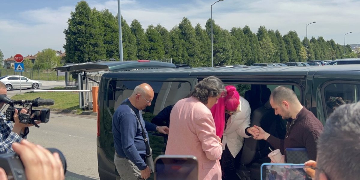 Na sebi je imala sunčane naočare i visoki rep i nije skidala osmeh sa lica.