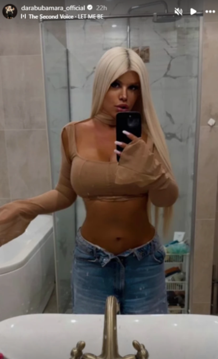 Naime, pevačica je pozirala u kupatilu ispred ogledala, a u prvi plan istakla svoju figuru. Otkopčane farmerke i naglašeno uzak struk bili su dovoljni da izazovu lavinu komentara, a mnogi su primetili da Dara izgleda bolje nego ikad.