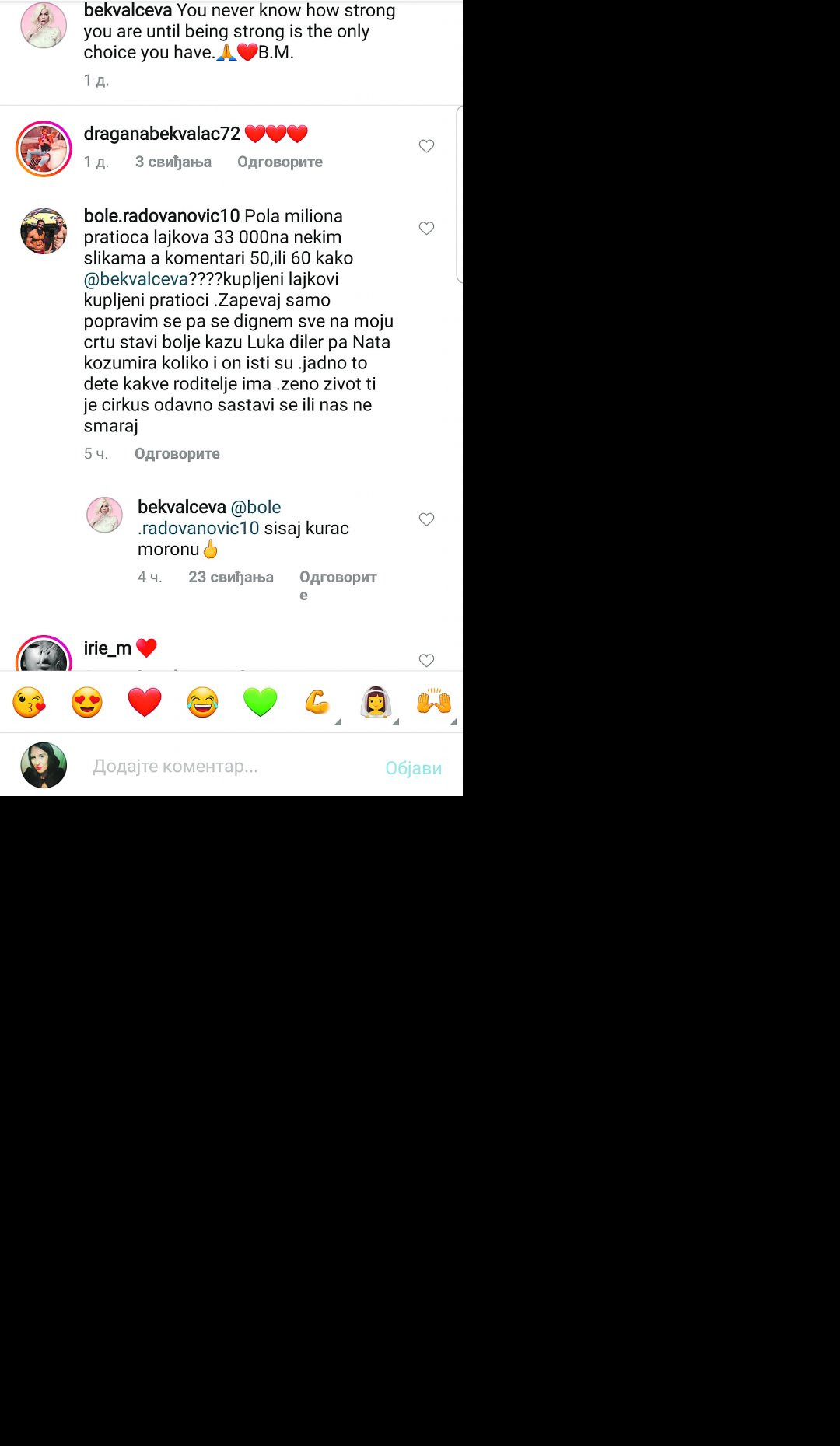 Popularna pevačica na ovoj društvenoj mreži dobija uglavnom reči podrške, ali ima i onih koji koriste svaku priliku da je prozivaju i vređaju.
