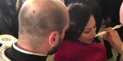 Nije mi jasno kako neko moze da slika i to iz ovog ugla, najsvetiju tajnu u crkvi-pricesce ! Pa ja sam danas od svog svestenika trazio da mi da blagoslov da diskretno slikam svog dvogodisnjeg unuka, tokom pricescivanja i nisam ga dobio, sto je i ispravno. A vesela Ceca, ne moze da se pricesti ko covek. Da li je pojedinim novinarima išta sveto ?