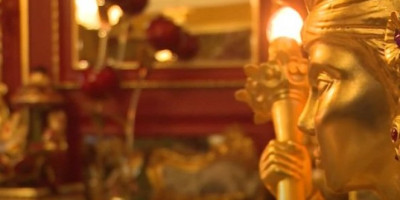 Zidovi su crvene boje, a sobe su ukrašene slikama i pozlatom, koju prvu i primetite kada vidite.