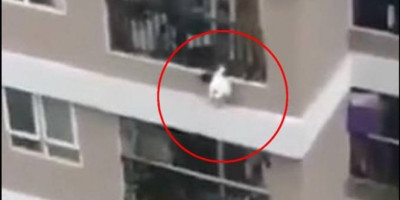 To joj nije uspelo, pa je u jednom trenutku počela da pada ka ulici. Na sreću, muškarac je uspeo da je uhvati u pravom trenutku i pala je tačno u njegovo naručje.