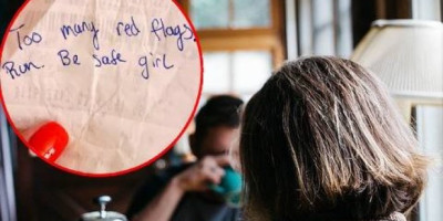 Na parčetu papira je pisalo upozorenje, 'Previše crvenih zastavica. Beži. Budi sigurna, devojko.', koje se odnosilo na muškarca sa kojim je bila.