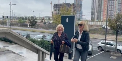 Ona je najpre sa Mirjanom Antonović ušla u Palatu pravde, da bi nakon nekog vremena izašla iz zgrade, u pratnji Mirjanine najbolje prijateljice Marise.