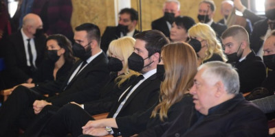 Marinkovi sinovi Nikola i Marko su stigli sa njihovom majkom Slavicom Rokvić, zavijeni u crno i nemi od bola.
