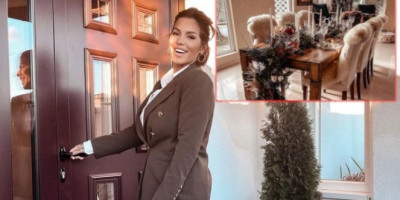 Seka je iskoristila krznene prostirke za stolice, ali i zelenilo kako bi ukrasila sto. Kristalne čaše zauzimaju centralni deo trpezarijskoj stola, kao i providni tanjiri.