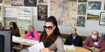 Ona se na biračkom mestu u Osnovnoj školi "Vojvoda Radomir Putnik" na Savskom vencu pojavila nešto pre 13 časova u pratnji sina Veljka! Pevačica nije delovala umorno, već je nasmejano pozirala foto-reporterima.