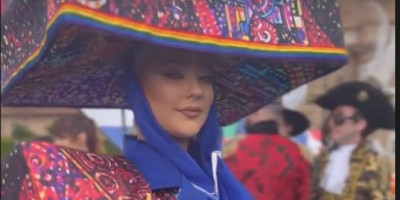Ronela se na jučerašnjoj ceremoniji povodom svečanog otvaranja manifestacije pojavila obučena u kostim čudnog dezena, a na glavi je nosila kockasti detalj koji joj je bukvalno prekrio lice.