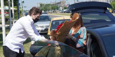 Ona je od supruga dobila ogroman buket ruža, a od uzbuđenja nije skidala osmeh s lica.