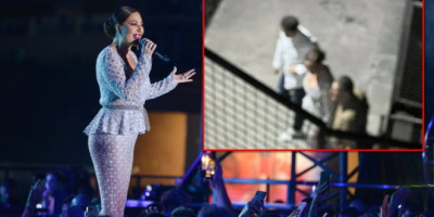 Naš paparaco uslikao je pevačicu sa dvojicom momaka koji su je obezbeđivali dok je kroz podzemni prolaz i stepenicama za evakuaciju dolazila na nastup.