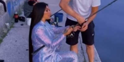 Pevačica Seka Aleksić top-top sređena, neplanirano je došla do ribolovaca i krenula da peca sa njima