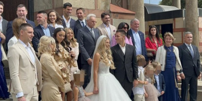 Mladencima su svi čestitali, nakon čega su napustili crkvu i fotografijsali se sa članovima porodice na stepenicama hrama.