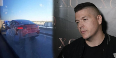 PRVE FOTOGRAFIJE S PANČEVAČKOG MOSTA! Automobil Slobine žene stoji nasred kolovoza, pevač je prvi izleteo da spreči čoveka da se ubije!
