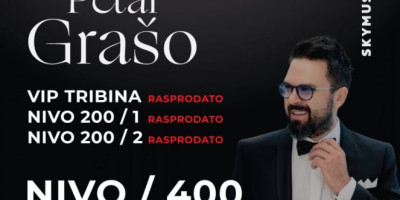 - U prodaji se sada nalazi i nivo 400, po ceni od 1500 i 1800 dinara. Do koncerta Petra Graša u Areni ostalo je nedelju dana, a kako su ulaznice rasprodate, odlučili smo da u prodaju pustimo i nivo 400, koji prvobitno nije bio u planu. Ovu odluku smo doneli zajedno sa Petrom, jer želimo da svim njegovim fanovima omogućimo da uživaju u njegovoj muzici i pesmama zajedno sa njim, sledećeg petka u Areni. Interesovanje je ogromno – saopštili su iz Skymusic-a, koji je zadužen za organizaciju ovog muzičkog spektakla.