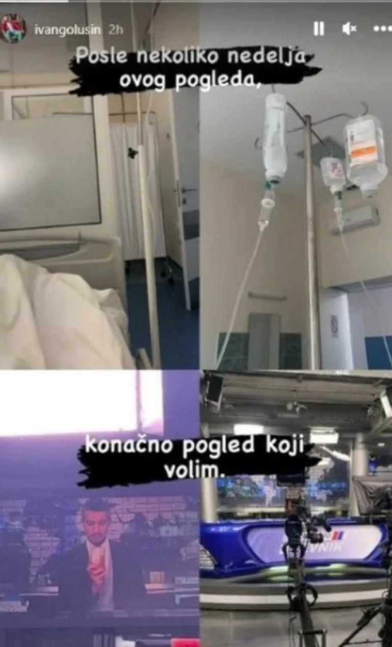 - Posle nekoliko nedelja ovog pogled, a konačno ovaj pogled koji volim - napisao je Ivan Golušin objavivši fotku iz bolnice na kojoj se vidi infuzija i bolnička soba.