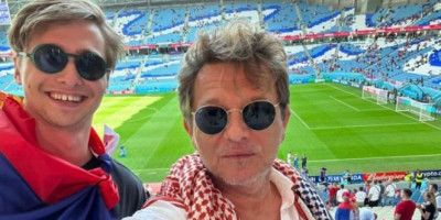Dragan i njegov sin Aleksej objavili su fotografiju sa stadiona "Al Džanub" na kojem Srbija igra sa Kamerunom ogrnuti zastavom naše zemlje.