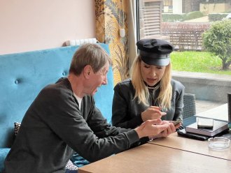 Voditejka najgledanijeg jutarnjeg programa u Srbiji Jovana Jeremić i legendarni Moka Slavnić uhvaćeni su u jednom prestoničkom kafiću gde su vreme između obaveza prekratili zajedničkom kafom.