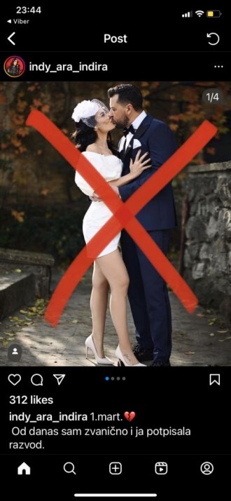- Od danas sam zvanično i ja potpisala razvod. Ostavila prošlost iza sebe. To ne znači da naša ljubav nije bila prava i velika. Samo je moj bivši muž iskrivio i umanjio tu ljubav onog dana kada je potpisao razvod 27. decembra. Na datum kada smo se prvi put poljubili. (27.07.) Slagao je nas sve tog dana, matičara, kumove i sebe, da će u dobru i zlu biti pored mene (10.10.) - napisala je Indi.