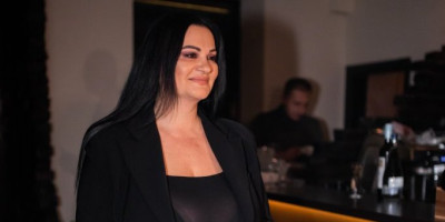 U elegantnoj crnoj kombinaciji pevačica je dočekala goste, a potom joj je kolega zapevao i rođendansku pesmu, a ona nije skidala osmeh sa lica.