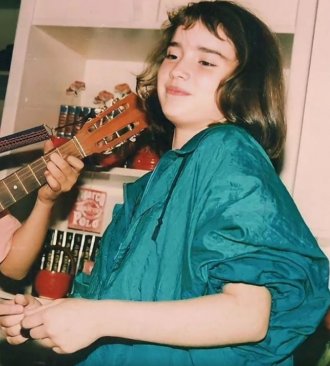 Međutim, na jednom Instagram nalogu se pojavila fotografija iz perioda kada je Nikolićeva imala kratku braon kosu do ramena i šiške, a već tada je pevala pesmice uz gitaru koju takođe možemo videti iz priloženog.