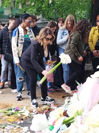 Ona je vidno potresena tragedijom došla ispred škole i položila bele kale za žrtve jezivog pira, međutim nju je danas pogodila još jedna vest a to je smrt Hrvatskog pevača Jasmina Stavrosa.