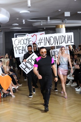 Sako kao omiljeni modni detalj i ove večeri dominirao je pistom, a ništa manju pažnju od modela koje je prikazao privukle su i parole koje su modeli poneli u samoj završnici modnog spektakla. Noseći u rukama transparente sa rečima "Individual" " nada" , "izaberi mir" , "ljubav" ispisane na engleskom jeziku, jasno su u Batino ime poslali poruku celoj naciji.