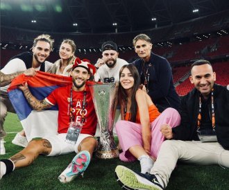 Anastasija Ražnatović bodrila je svog dečka Nemanju Gudelja tokom utakmice u Budimpešti, na kojoj je njegov klub osvojio "Ligu Evrope".