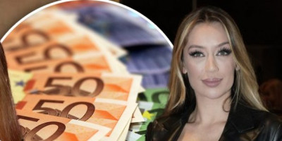 "Letele" su novčanice od 100 i 200 evra, te u njenim rukama samo za 40 sekundi, koliko traje snimak, možemo videti preko 1.000 evra.