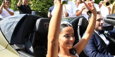 Darko i Katarina seli su u skupoceni "lamborgini", čija cena iznosi vrtoglavih 320.000 hiljada evra. Mlada nije skidala osmeh sa lica i sve vreme se smejala i đuskala.