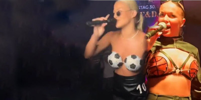 Naime, Teodora Džehverović i Ema Radujko, performerke sa sigurno najprovokativnijim stilom odevanja, sada su otišle korak dalje, pa su na nastup došle u grudnjacima, ali u obliku košarkaških, te fudbalskih lopti.