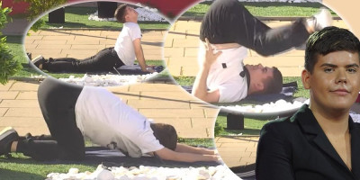 Naime, on je izašao ispred "Bele kuće", legao na prostirku i počeo do trenira kako bi doveo liniju u red.