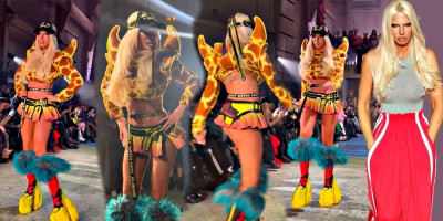 Kadrove sa revije je na društvenoj mreži Iks objavio njen najbliži saradnik, a na njima možemo videti najpoznatiju srpsku pevačicu u nesvakidašnjem izdanju - gigantskim cipelama i sa jakom šminkom.