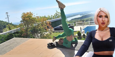 Jovana je sada na svom Instagram profilu podelila snimak iz luksuzne nekretnine. Ona je predivno jutro iskoristila za vežbanje na strunjači pored bazena, dok su se majstori čuli u pozadini.
