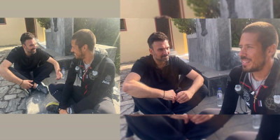 Nikola Rokvić i Ivan Bosiljčić vodili su zanimljiv razgovor tokom predaha od pešačenja ka Egini.