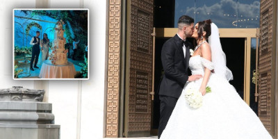 Da mladenci nisu štedeli novac kada je svadba u pitanju, dokazuje i njihova skupocena torta koja je bila na nekoliko spratova.