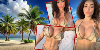 Atraktivna crnka je, tom prilikom, na plaži kompleksa "Burdž Al Arab" pozirala u zlatnom "fendi" bikiniju, koji je posebno istakao njeno izvajano telo, bujne silikonske grudi, ali i isklesani stomak.