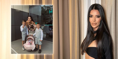 Ponosna mama blistala je dok je pozirala sa naslednicima. Dečaci su za ovu specijalnu priliku bili elegantno odeveni, a malena Nora dremala je udobno ušuškana u nosiljci.