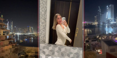 - Ćao, društvo, došla sam u Dubai da uriniraju i kenjaju po meni. Od sutra, haos! Pogledajte sobu, ovde će da padne ponovo akcija sa Arapom, a ovde, pogledajte pogled. Vau, ljudi, pogledajte ovo. Sija Dubai, sija mačkica.