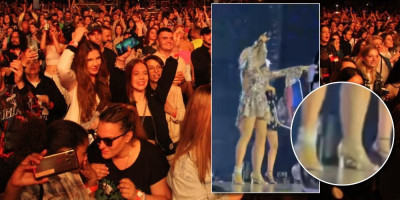 Oni koji imaju oštro oko primetili su da je pevačica na desnoj nozi imala zavoj, a kako je ovo izgledalo možete pogledati u videu ispod.