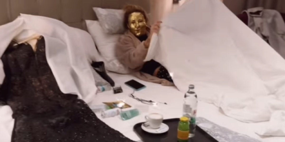 - Ne da je stigla na vreme, nego je pevačica došla u hotel i nekoliko sati ranije pa je uspela čak i da se opusti pred nastup. Stavila je zlatnu masku na lice dok je leškarila na krevetu.