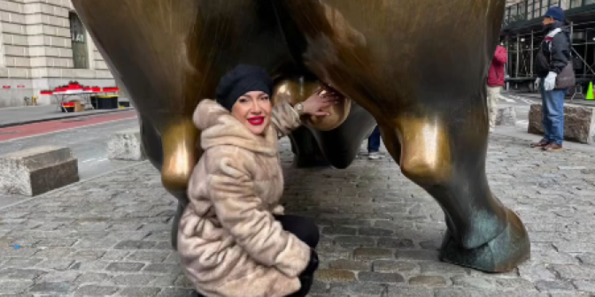 Popularna "kraljica šera" fotografisala se pored čuvene statue bika ispred američke berze, ali u krajnje neobičnoj pozi. Za turističku atrakciju koja privlači hiljade ljudi dnevno vezana je i legenda da će onaj ko protrlja nos ili rogove bika imati sreće. Jovana se, međutim, pohvalila da je uhvatila bika, ali za jedan drugi, intimniji deo tela.