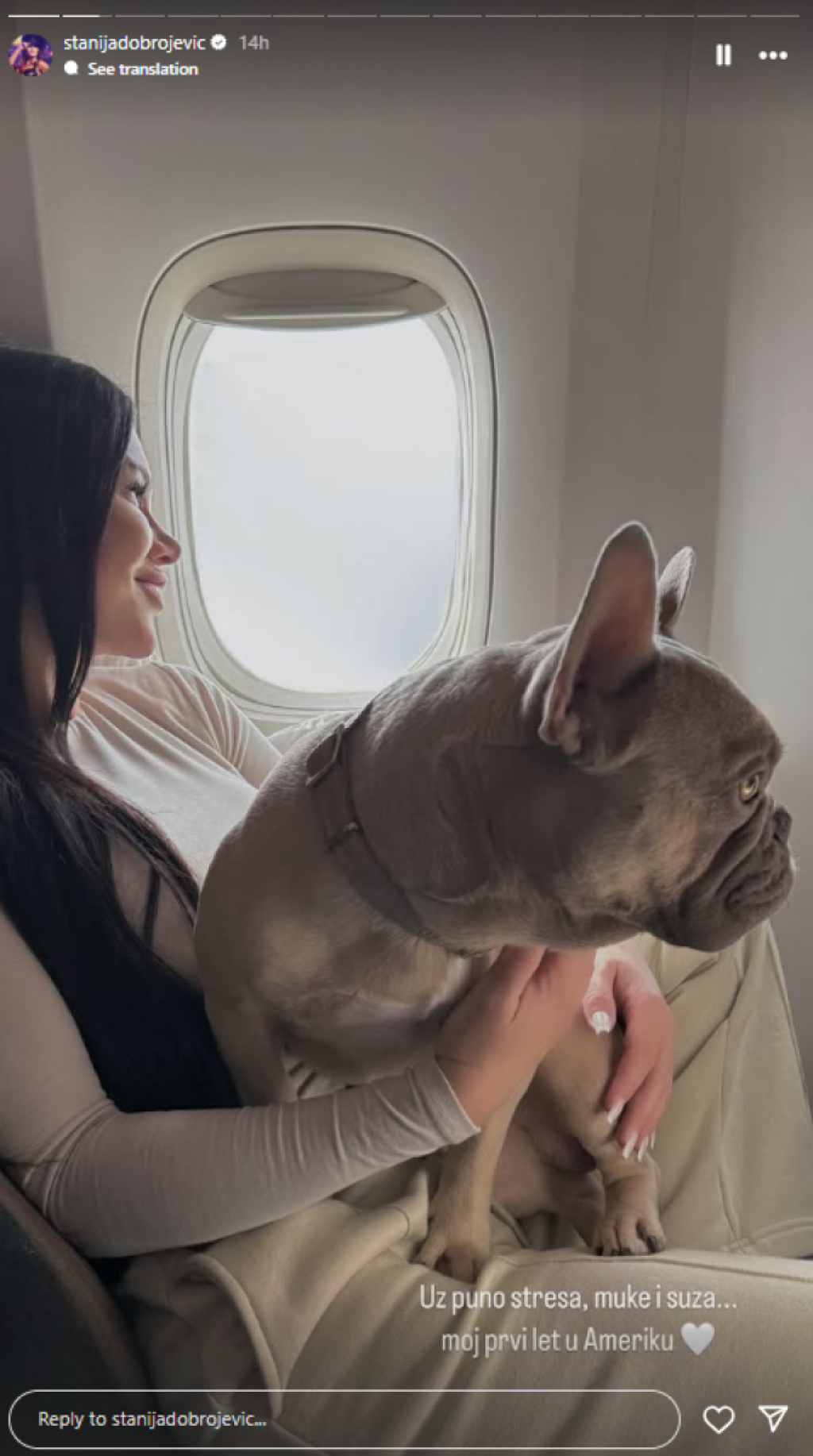 - Jesam vam rekao da sam ja mali, svetski pas i da je moj guzičak rođen da šeta Majamijem? Uz puno muke, stresa i suza... Pablov prvi let u Ameriku! - napisala je Dobrojevićeva.