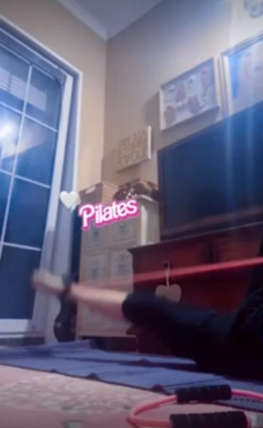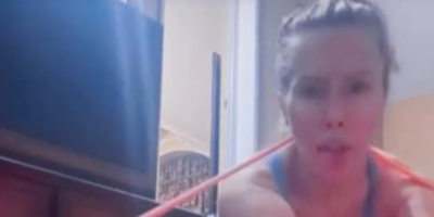 Ona je pokazala da ume da uradi špagu, snimala je kako radi vežbe za noge i zadnjicu, a u jednom trenutku se i istezala, pa je njen bujni dekolte došao u prvi plan.
