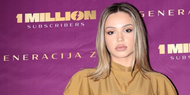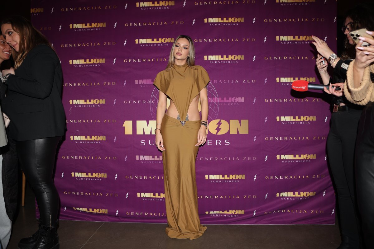 Breskvica je sve oduševila smelim stajlingom. Ona je za ovu priliku obukla dugačku, zlatnu haljinu sa prorezima koja je savršeno naglasila njen uzak struk, ali je otkrila i tetovažu na dnu stomaka. Ispod ove kreacije pevačica je obukla crveni donji veš, koji je svim medijima privukao pažnju.