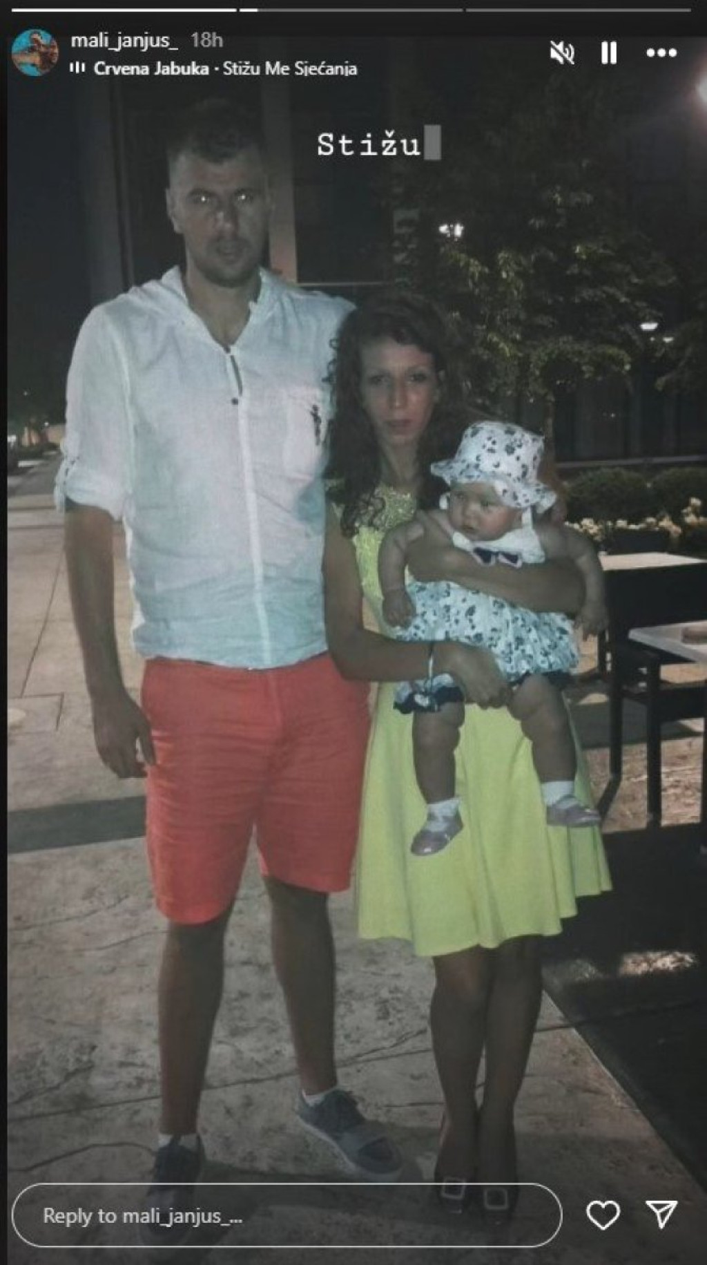 Janjušević je bio vidno utučen i melanholičan, a nakon što je saopštio da je ponovo slobodan, na Instagramu je podelio staru fotografiju sa bivšom suprugom Enom. Koliko je emotivan govori i činjenica da je uz fotografiju postavio i pesmu "Stižu me sećanja". Sa njima na fotografiji je ćerkica Kruna kada je bila beba, a Ena je drži u rukama.